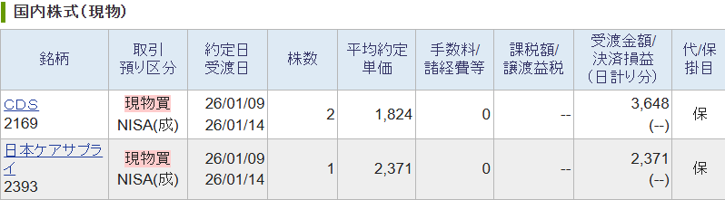 以前CDSは1755円の時に取得、日本ケアは1996円の時に買いました。