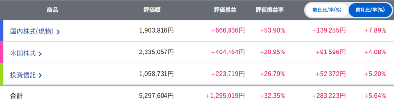 今月の増減額は前月比で+56.9万円でした。