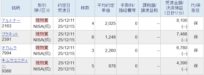 アルトナー(2163) NISA・4株(@2,025) 一月末が権利確定日!