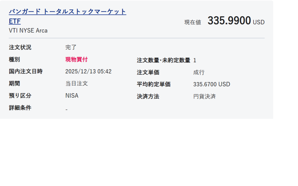 購入銘柄:VTI(バンガード・トータル・ストック・マーケットETF)